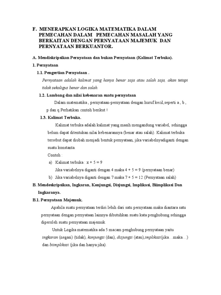 Logika Matematika Rumus. Logika matematika merupakan salah satu materi pelajaran matematika yang mengandung kajian matematis logika. Logika matematika akan memberikan landasan.