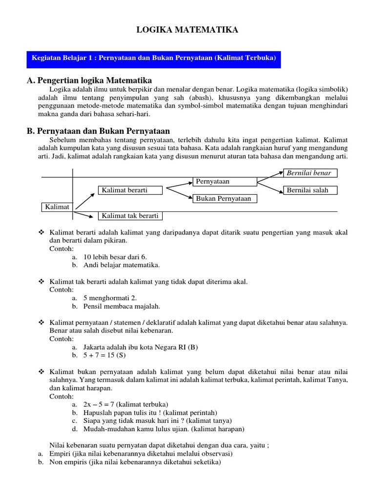 Apa saja contoh dari logika matematika. Kambing adalah hewan berkaki empat q : Dalam penarikan kesimpulan terdiri dari beberapa cara, yaitu: Logika matematika berhubungan erat dengan ilmu komputer dan logika filosofis.