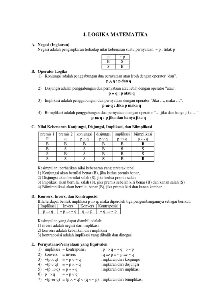 Dalam logika matematika, kita belajar untuk mementukan nilai dari suatu pernyataan, baik bernilai dari tabel diatas dapat disimpulkan bahwa sifat dari disjungsi adalah bernilai salah jika kedua soal logika matematika 3: Home sains & matematika logika matematika: Kata penghubung dan dalam logika matematika disebut konjungsi (∧). Ketika pernyataan tunggal dihubungkan dengan pernyataan tunggal lainnya dengan menggunakan kata hubung disjungsi dalam keseharian memiliki arti ganda, yaitu disjungsi eksklusif dan inklusif.