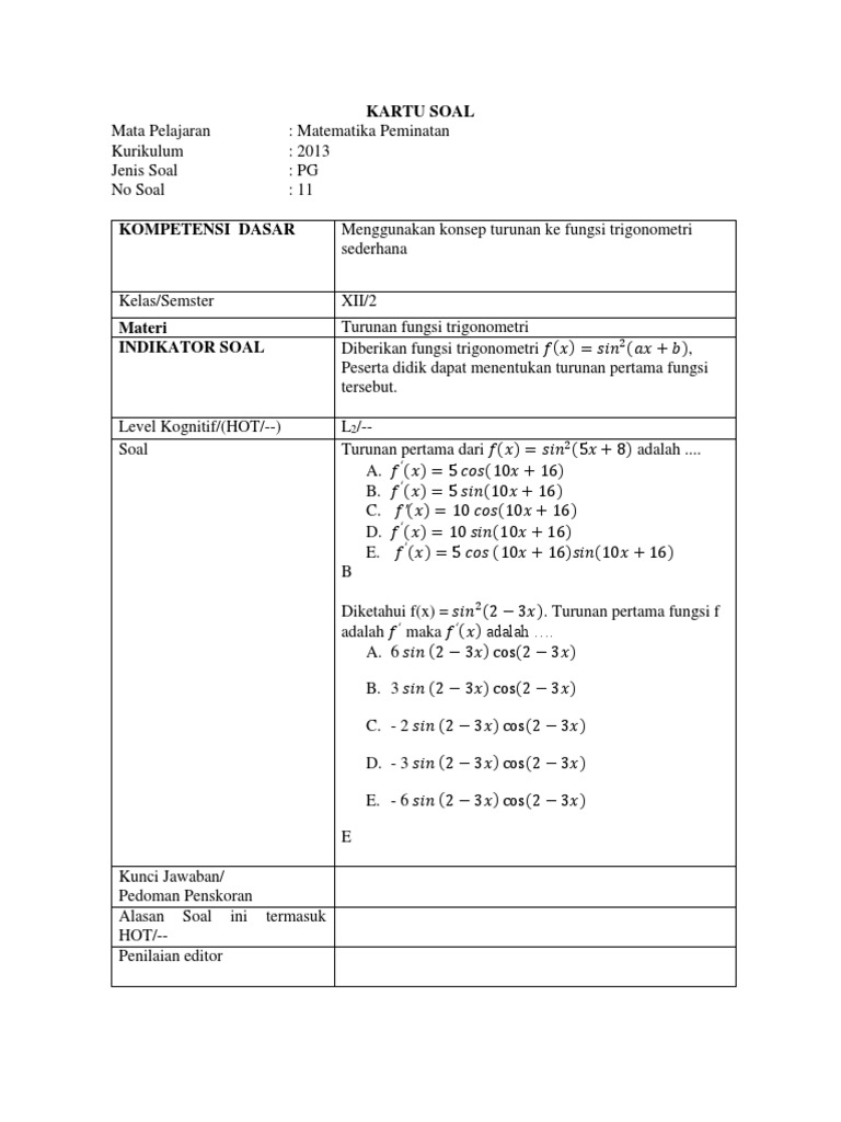 Contoh Soal Dan Jawaban Limit Fungsi Trigonometri Kelas 12