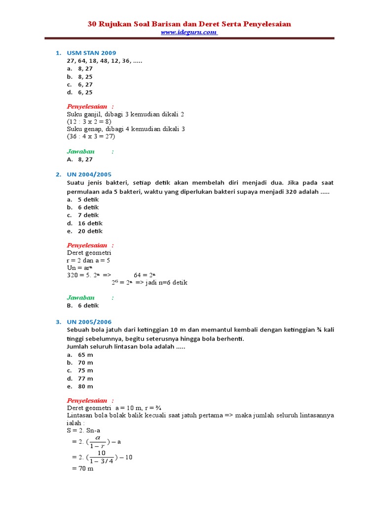Soal Dan Jawaban Barisan Dan Deret Geometri. Latihan soal barisan geometri dan pembahasannya,kunci jawaban soal barisan geometri, rumus deret geometri, suku tengah barisan pada pembahasan sebelumnya dengan judul : Barisan di atas adalah barisan geometri, karena memiliki rasio yang sama.